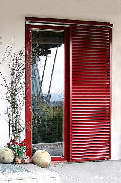 Klare Formen und Linien sind herausragende Attribute der zeitgenössischen Architektur, Fensterläden unterstreichen die Grosszügigkeit der Glasfronten und bringen Bewegung und Farbe ins Gesamtbild.
